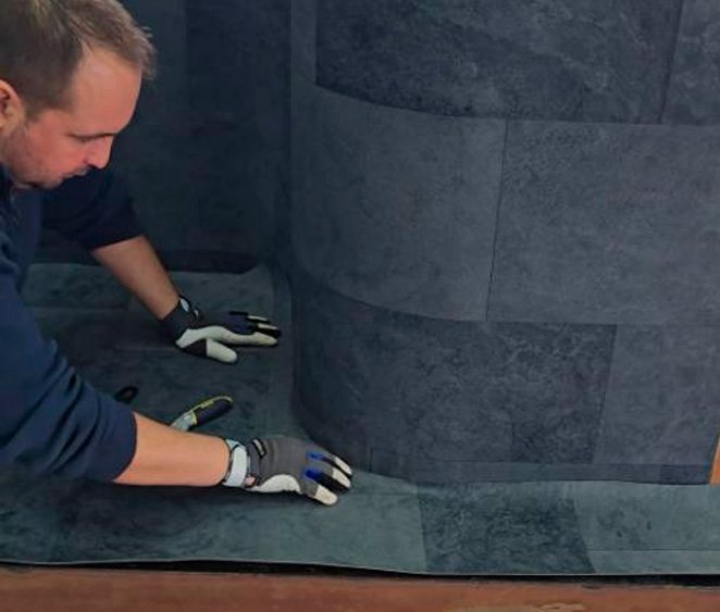 Preparación de superficie previa a la instalación, en la que se sanea zona de trabajo, especialmente, empotrables de suelo y paredes.
